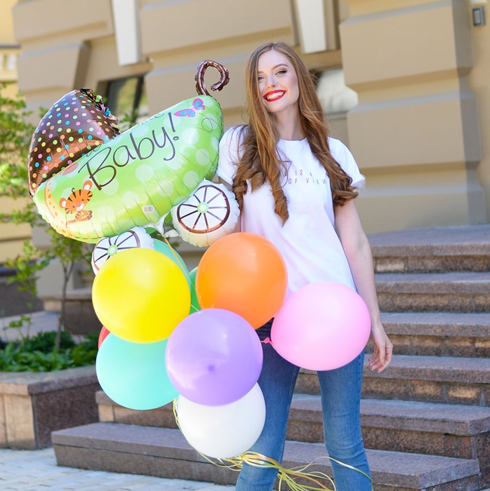 Шар по форме коляски вы можете выбрать любого цвета по наличию на день заказа.