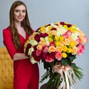 Восхитительный букет выполнен из микса роз. Одновременно яркий и нежный букет, покорит любое женское сердце.
