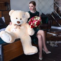 Мягкая игрушка медведь бежевого цвета с латками - 150 см.