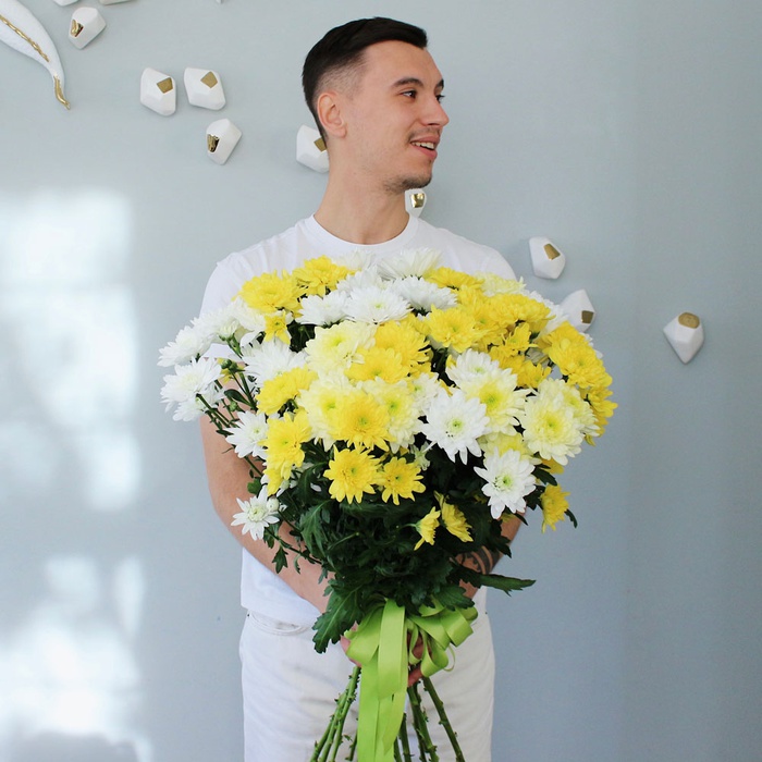 Букет 15 желто-белых хризантем – это отличный способ выразить свое внимание. Желто-белые хризантемы символизируют дружбу и доброту.