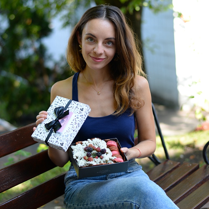 Беспроигрышный способ порадовать любую женщину - коробка из сухоцветов и французского десерта макаронс. Сухоцветы долго сохранят свой первоначальный вид, а сладости такие вкусные, что долго не задержатся.