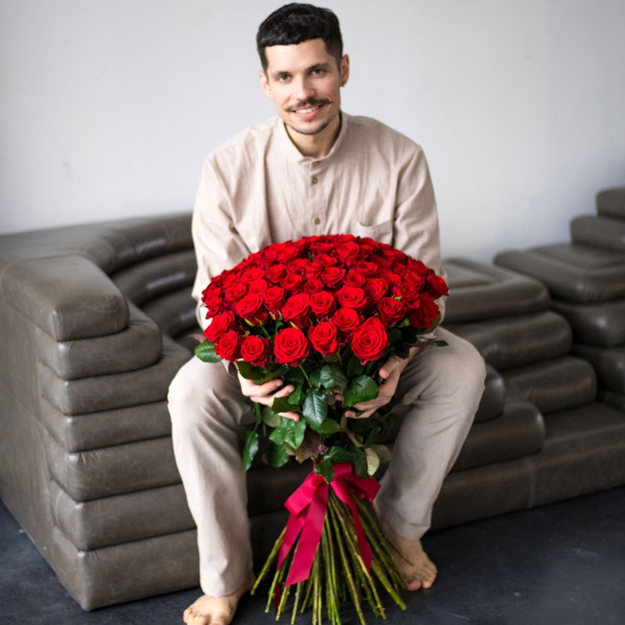 Букет "75 роз Маричка" мастерски составлен нашими флористами, что позволяет каждому цветку раскрыть свою чарующую прелесть и гармонично дополнить общую композицию.