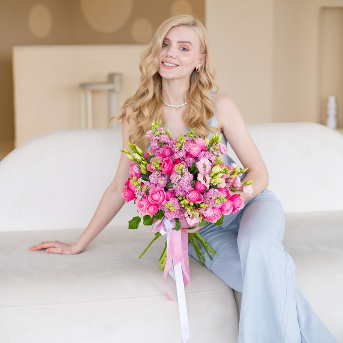 Закажите букет с эустомой, маттиолой и розами "Мечты в розовом" прямо сейчас и погрузитесь в волшебный мир цветов от DonPion!