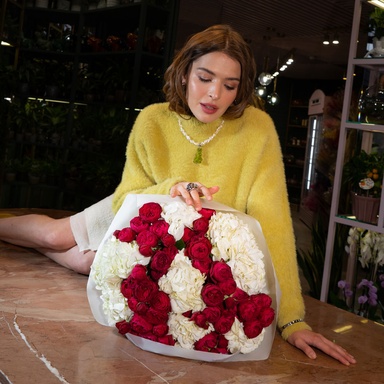 Букет из гортензии и роз “Нежность и страсть” от DonPion — это гармоничное сочетание мягкости и яркости, созданное для самых выразительных моментов. Объёмные, воздушные гортензии придают композиции легкость и утончённость, а насыщенно-красные розы добавляют глубины, чувственности и символизируют искренние, сильные чувства. Такой букет выглядит дорого, элегантно и моментально привлекает внимание.