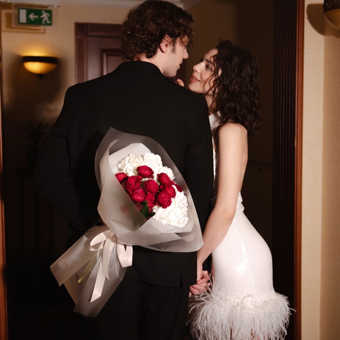 Подарите своим близким частичку романтики и элегантности с букетом "Романтика контрастов", S — пусть ваши чувства засияют яркими красками и оставят приятные воспоминания.