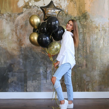 Охапка черно-золотых шаров - фантастический подарок и украшение праздника!