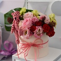 Нежный букет в шляпной коробке с игрушкой. Приятный сюрприз для ваших близких и идеальный для молодой мамы.