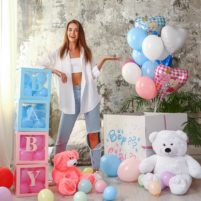Подарочный набор с игрушкой и шариками "Гендер Пати" - это универсальный набор для определения пола ребенка.