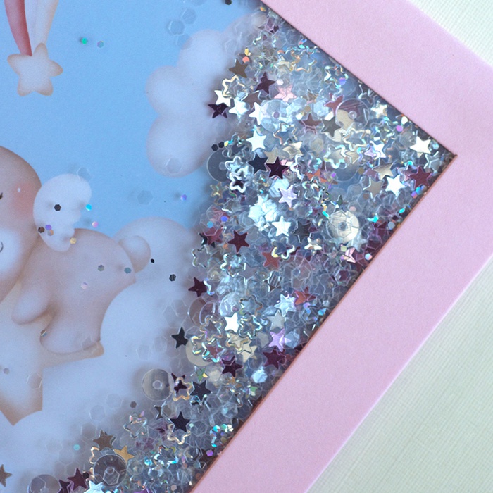 Открытка прозрачная с сыпучим блеском "Зайка"