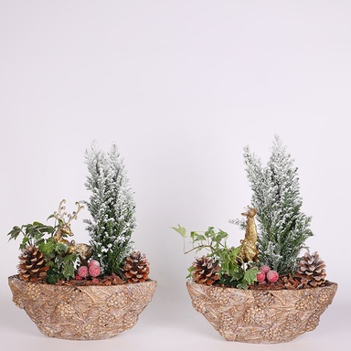 Эта зимняя композиция в кашпо – настоящее чудо, которое украсит ваше пространство и наполнит его атмосферой зимней красоты.