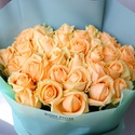 Монобукет з персикової троянди виглядає ніжно і елегантно. Верхні пелюстки мають зеленуватий відтінок, але при повному розкритті бутона колір стає світло-персиковим.