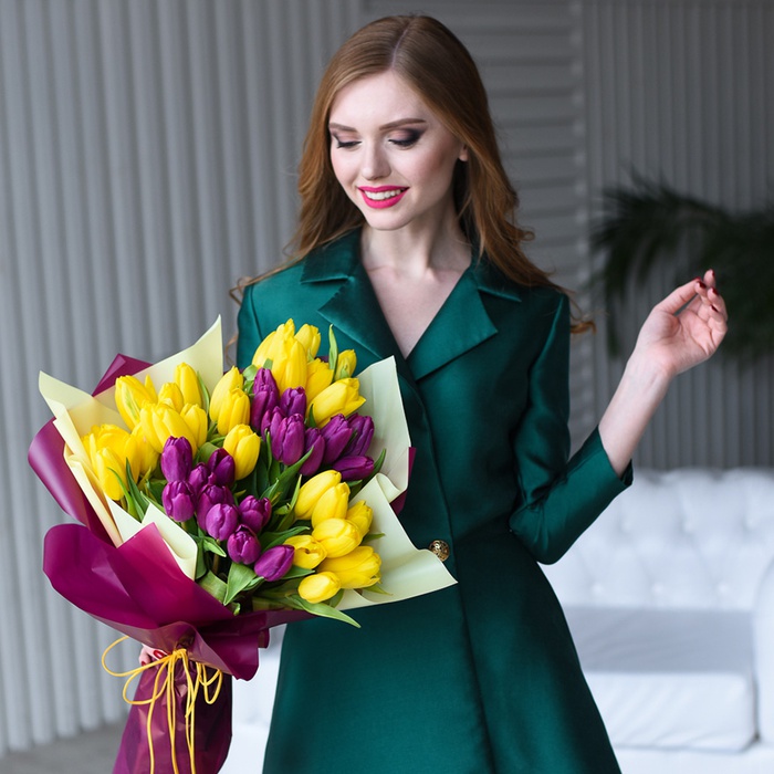 Мікс жовтих і фіолетових тюльпанів 51 шт.