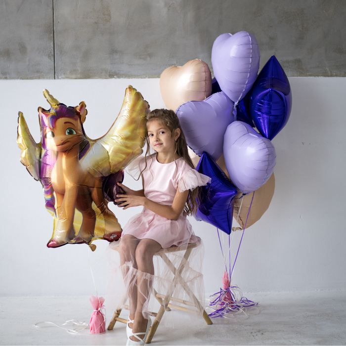 Оберемок повітряних куль "Єдиноріг Санні" — це яскравий і казковий набір, який перенесе вас у чарівний світ! У композицію входить фольгована фігура зображення очарового єдинорога Іззі, а також повітряні кулі у формі зірок і сердець, які додають святу особливого шарму та радості.