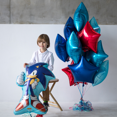 Оберемок повітряних куль "Соник" — це неймовірний набір, який подарує атмосферу швидкості та пригод! У складі оберемка є фольгована фігура з популярним персонажем Соником, а також кулі у формі зірок, що підкреслюють динамічний дух цієї захоплюючої теми.