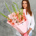 Соковитий літній букет з сезонних гладіолусів. Смачні відтінки викликають посмішку на обличчі.