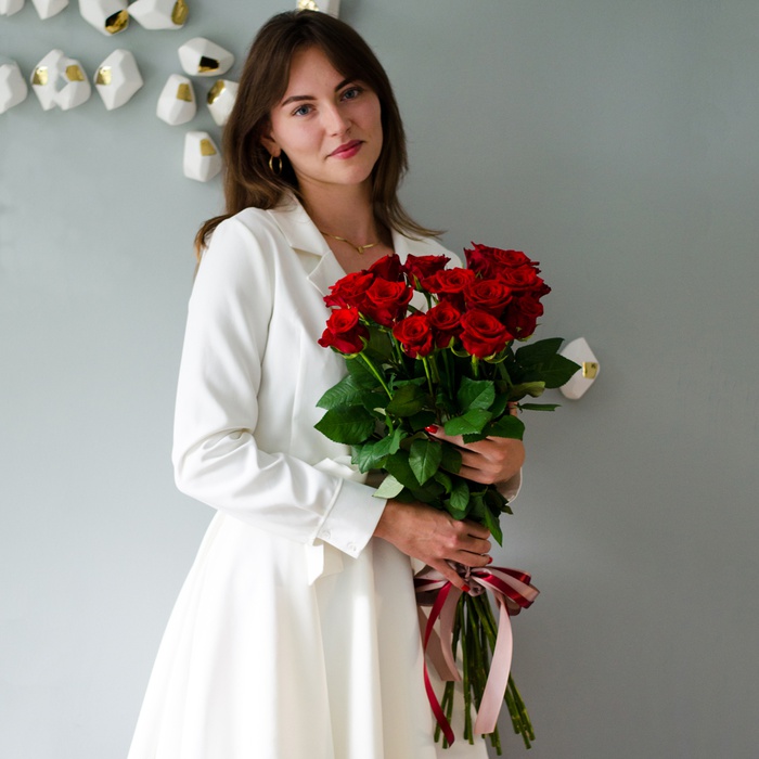 - Букет 15 червоних троянд Мері Мі, 70 см