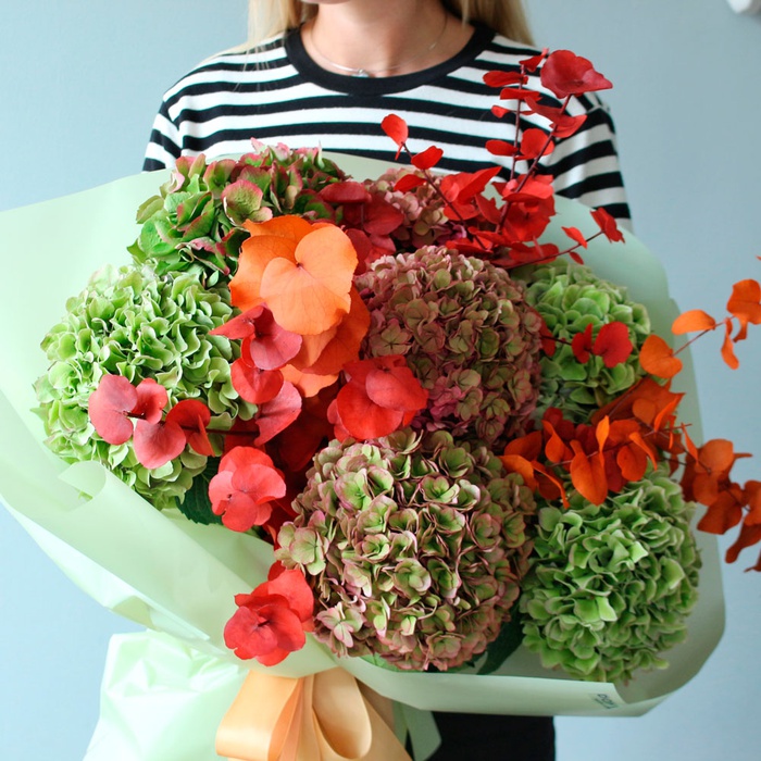 Гортензія - 7 шт, евкаліпт стабілізований, упаковка