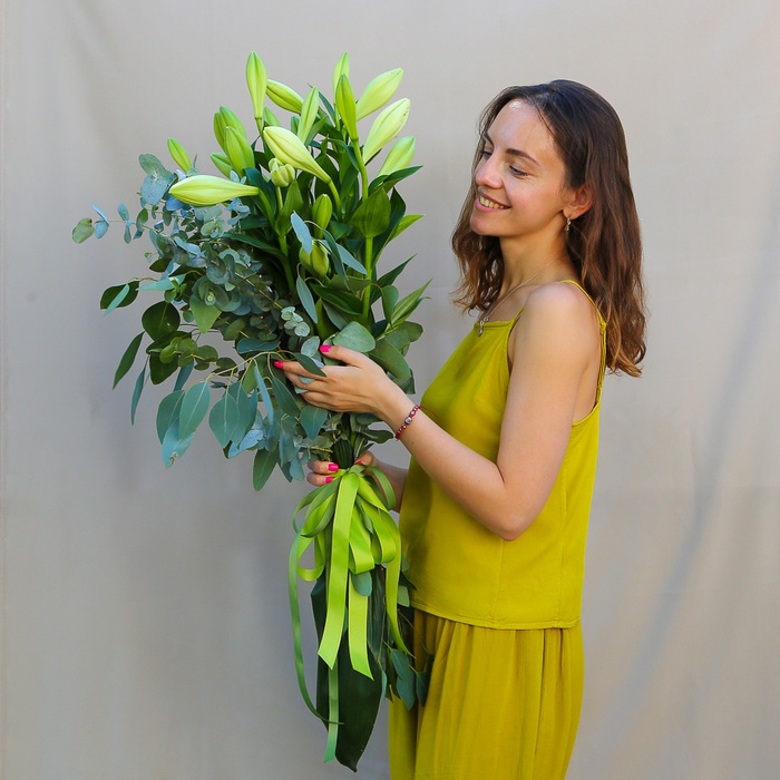 Букет складається з благородних лілій та евкаліпту та створює справжню літню магію.