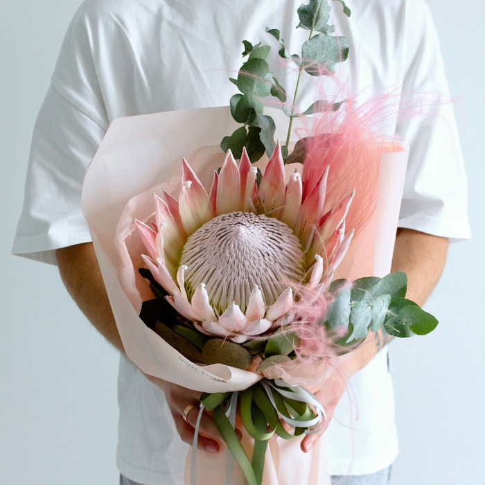 Наш букет із королівської протеї, вражає своєю неперевершеною красою та грацією.