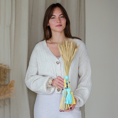Незвичайний букет з пшениці та макраме, універсальний та патріотичний, чудово підійде і для чоловіка, і для жінки.