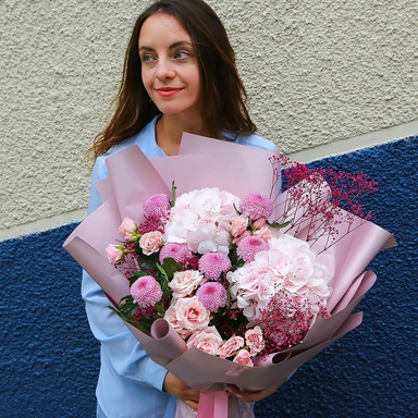Гортензія, хризантема, троянда-спрей, гіпсофіла, упаковка