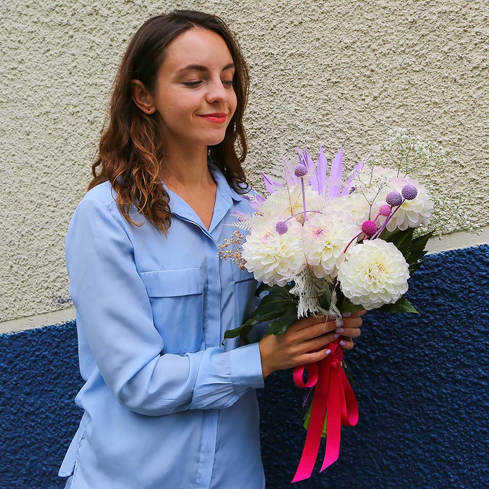 Букет із жоржинами та сухоцвітами не тільки порадує, а й приємно здивує. З таким букетом ви точно зможете викликати потрібні емоції.