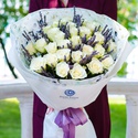 Букет, в якому чудово поєднуються ніжні білі троянди та ароматна лаванда – чудовий подарунок для Ваших коханих та близьких.