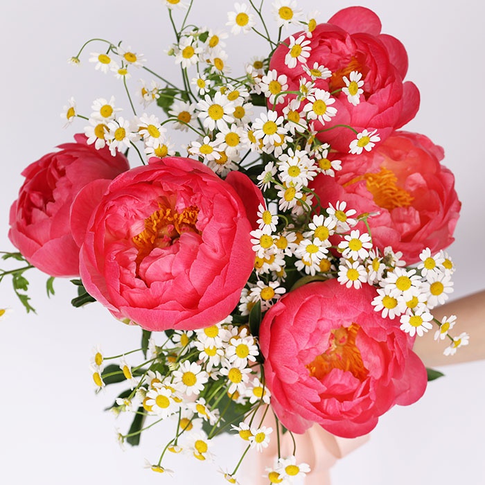 Купуючи букет "5 коралових півоній з ромашкою" у DonPion, ви даруєте своїм близьким не лише квіти, а й позитивні емоції та незабутні враження.