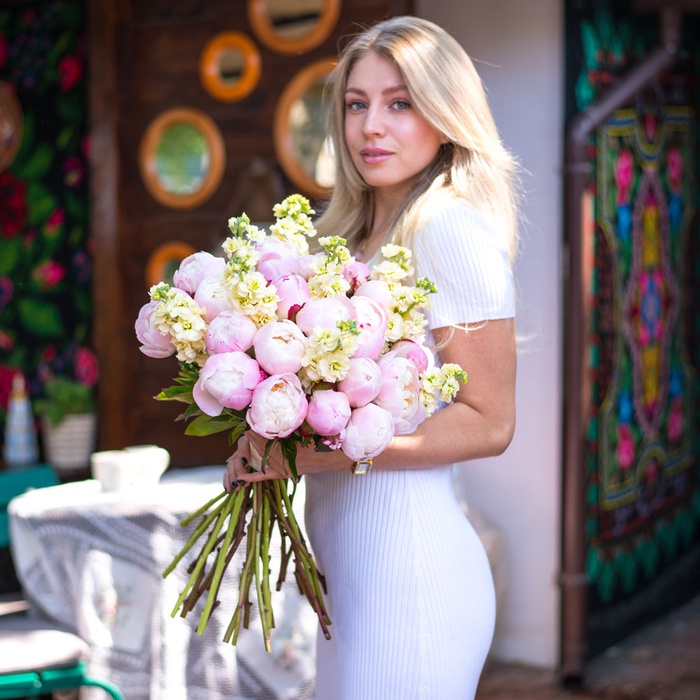 У магазині DonPion ми пропонуємо вишуканий букет з 25 півоній з матіолою, який стане ідеальним подарунком для будь-якої події. Цей букет вражає своєю витонченістю та ніжністю, поєднуючи свіжість півоній та легкий аромат матіоли. Кожна квітка обрана з любов’ю та увагою до деталей, що гарантує найвищу якість нашого букету.