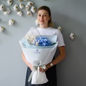 Незвичайний букет з лагурусом та гортензією - виглядає дуже стильно та цікаво.