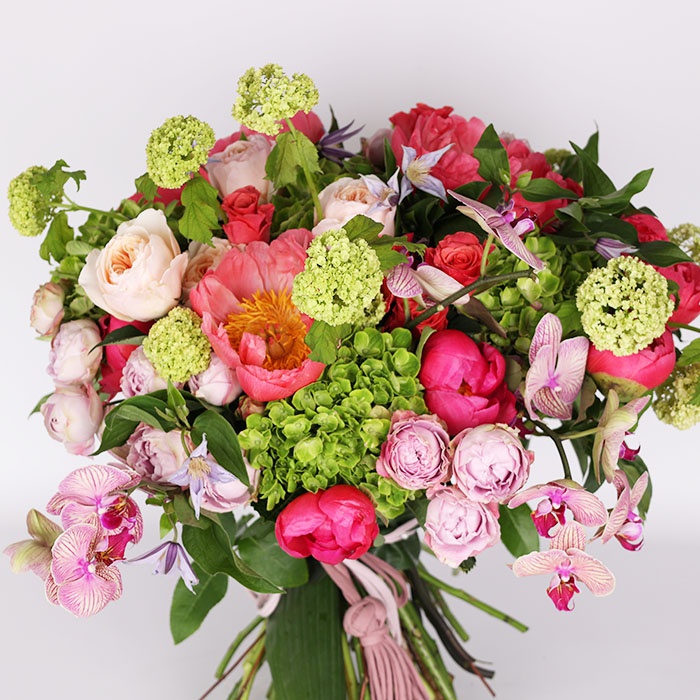 - Букет з гортензії, півонії, троянди та орхідеї "Барвистий балет квітів"
