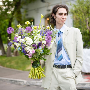 - Букет з матіоли, аліуму, люпина "Свіжість природи"