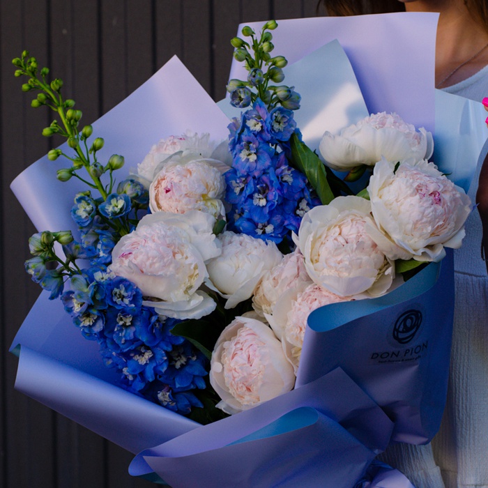 Дельфініум і півонії – миле та неймовірно ніжне поєднання, доповнюють одне одного і зовні, і ароматами.