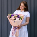 Троянда кущова - 3 шт, еустома - 7 шт, упаковка