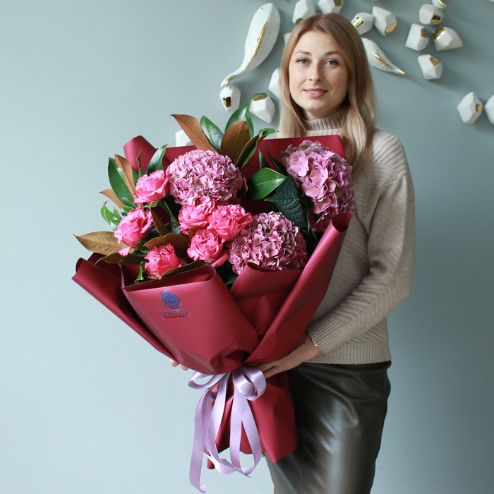 Гортензія, троянда, магнолія, упаковка.