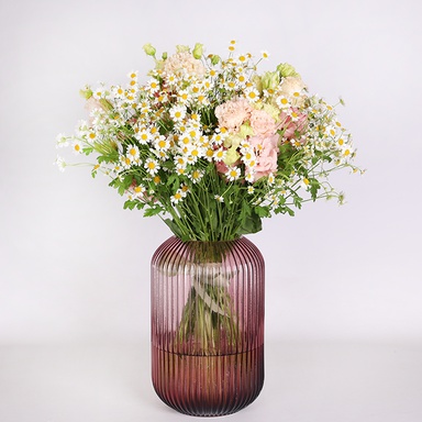 Ваза, танацетум - 9 шт, еустома - 5 шт
