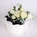 Квіти: троянда Athena - 5 шт., аліум - 2 шт., троянда спрей Міс Бомбастік - 1 шт., бузок - 1 шт., фрезія - 1 шт., евкаліпт Синерея - 1 шт.