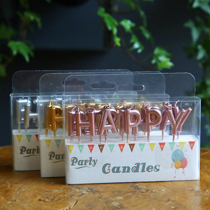 Стильні трендові свічки для торта літери "Happy Birthday" в золотому, срібному, рожево-золотому кольорі. Кожна буква на окремій підставці. Ці свічки додадуть святковий настрій не тільки дитині - вони без сумнівів сподобаються навіть дорослим.