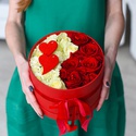Троянда сортів: Гран Прі, Аваланч. Коробка, декор з фетру по формі серця.