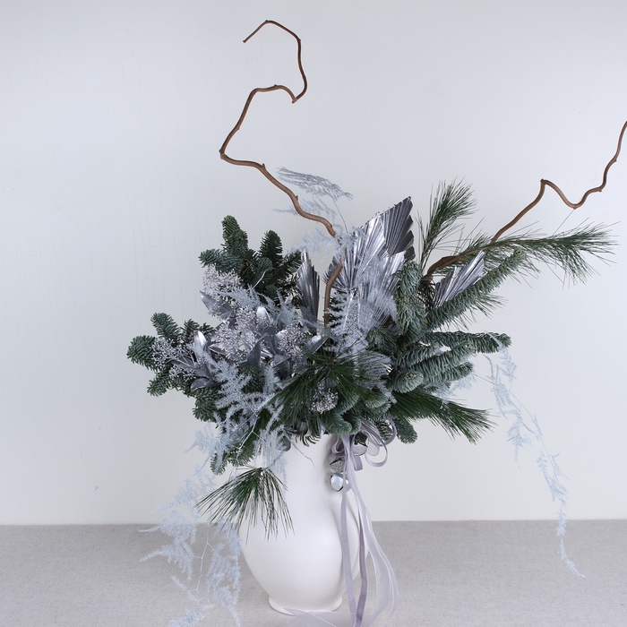 Ми представляємо вашій увазі ексклюзивну інтер'єрну композицію у вазі з хвоєю "Білий зі сріблом".