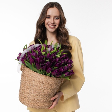 Квіти у кошику "101 фіолетовий тюльпан"