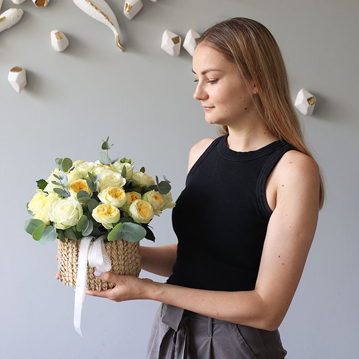 Квіти у коробці "Жовто-білі троянди" від DonPion - це не просто квіти, це вираження ваших почуттів, це момент щастя, який залишиться в пам'яті надовго.