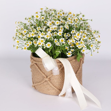 Квіти у кошику "21 ромашка" від DonPion – це втілення витонченості та природної краси. Ніжні білі ромашки, що символізують чистоту та невинність, зібрані у чарівний букет, який ідеально підходить для будь-якого свята чи як просто знак уваги. У кошику квіти збережуть свіжість і подарують радість одержувачу протягом тривалого часу.