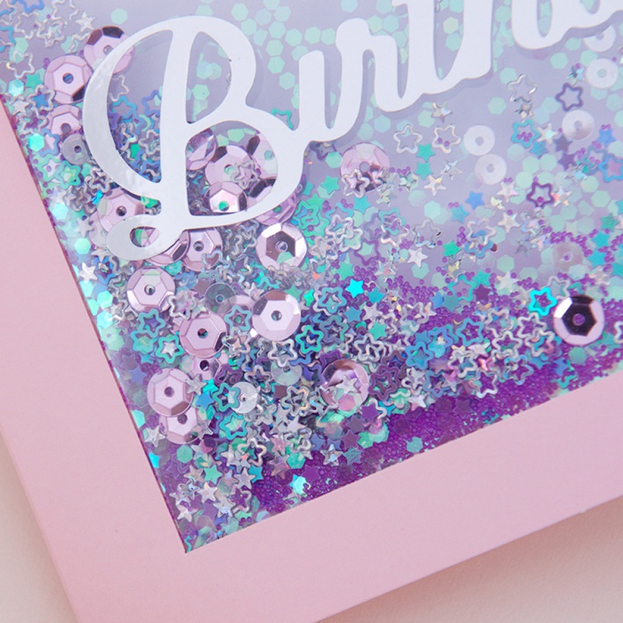 Вікно виготовлене з щільного прозорого пластика і наповнене дрібним перламутровим декором.