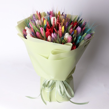 51 мікс тюльпанів, фарбована пшениця