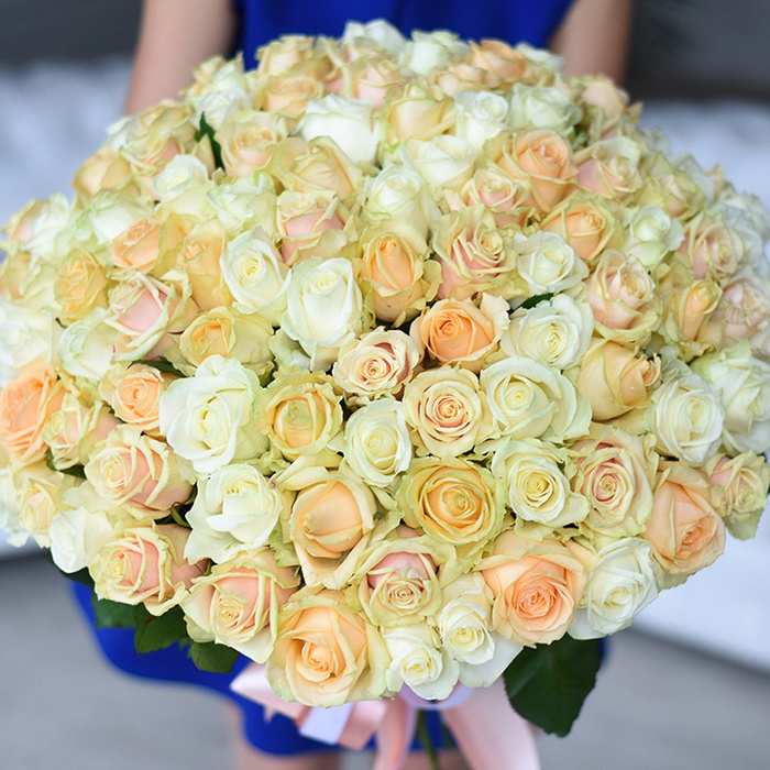 - Букет мікс з 101 білої і персикової троянди Аваланч