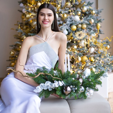 Новорічна композиція "Сяйво свята" від DonPion — це втілення святкового настрою, яке наповнить ваш дім теплом і радістю. Її розкішний дизайн поєднує гармонію натуральної хвої, елегантні декоративні елементи та яскраві акценти, які створюють незабутнє враження. Ця композиція стане центральною окрасою вашого святкового столу або стильним декором для будь-якої кімнати. Вишукані деталі, доповнені блиском святкових прикрас, нагадують про магію різдвяної ночі. Аромат хвої створює особливу атмосферу, яка дарує тепло та затишок навіть у найхолодніші зимові дні.