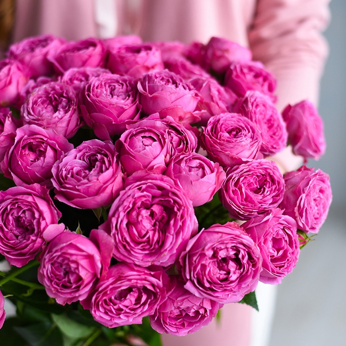 Удивительный букет пионовидных роз сорта Мисти Баблз - лучший способ покорить девушку!