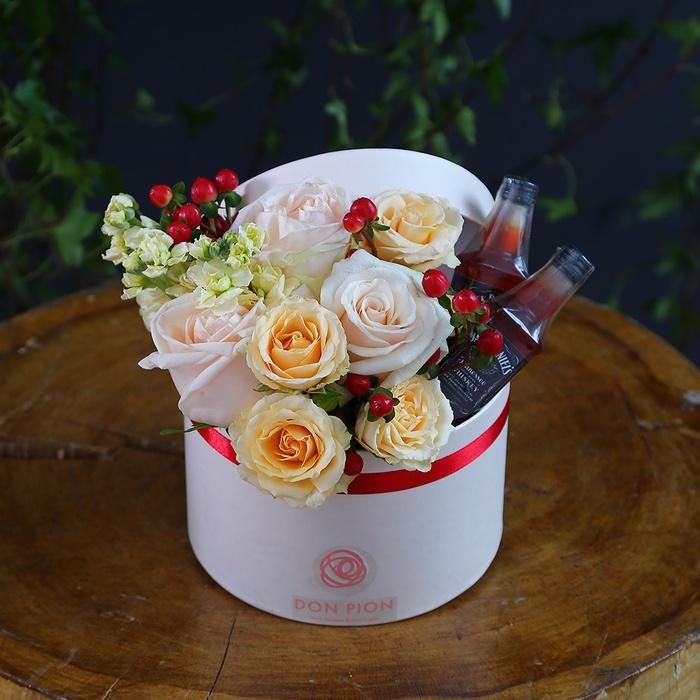 Композиція в шляпній коробці - втілення ніжності і свіжості. Порадує і подарує чудовий настрій близькій людині.
