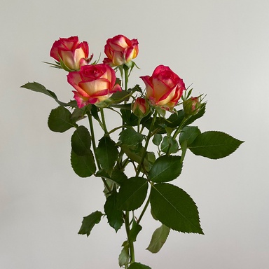 Троянда спрей Саммер Денс - жовтого кольору біля основи бутону, з насичено-рожевим кольором біля краю пелюсток.